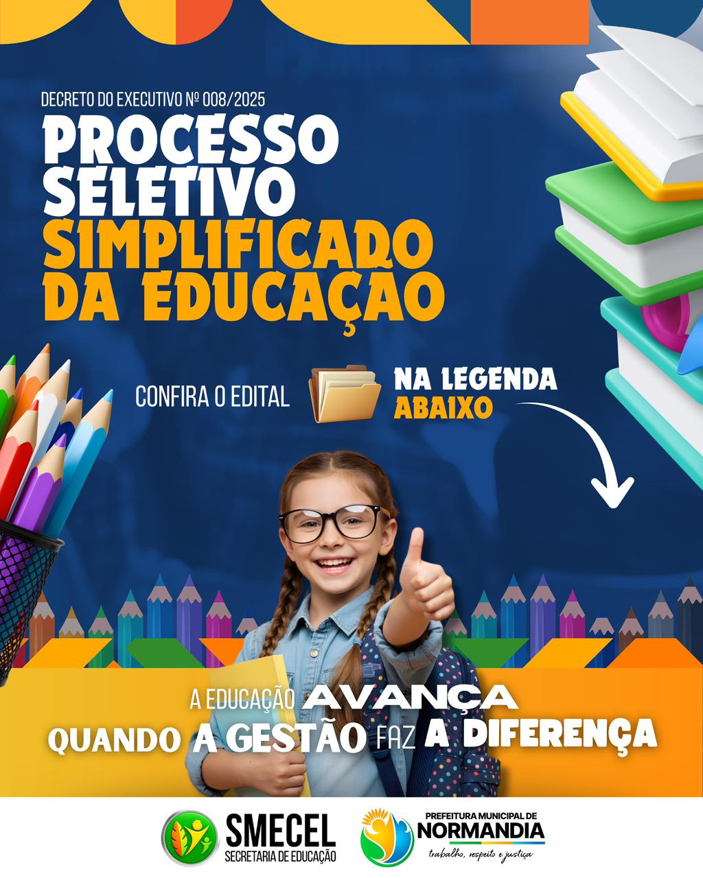 A seleção não apenas abre espaço para novos profissionais, mas também se configura como uma ação estratégica da gestão municipal para fortalecer o ensino em Normandia, que, nos últimos anos, tem investido fortemente em programas de capacitação, infraestrutura e apoio aos educadores.